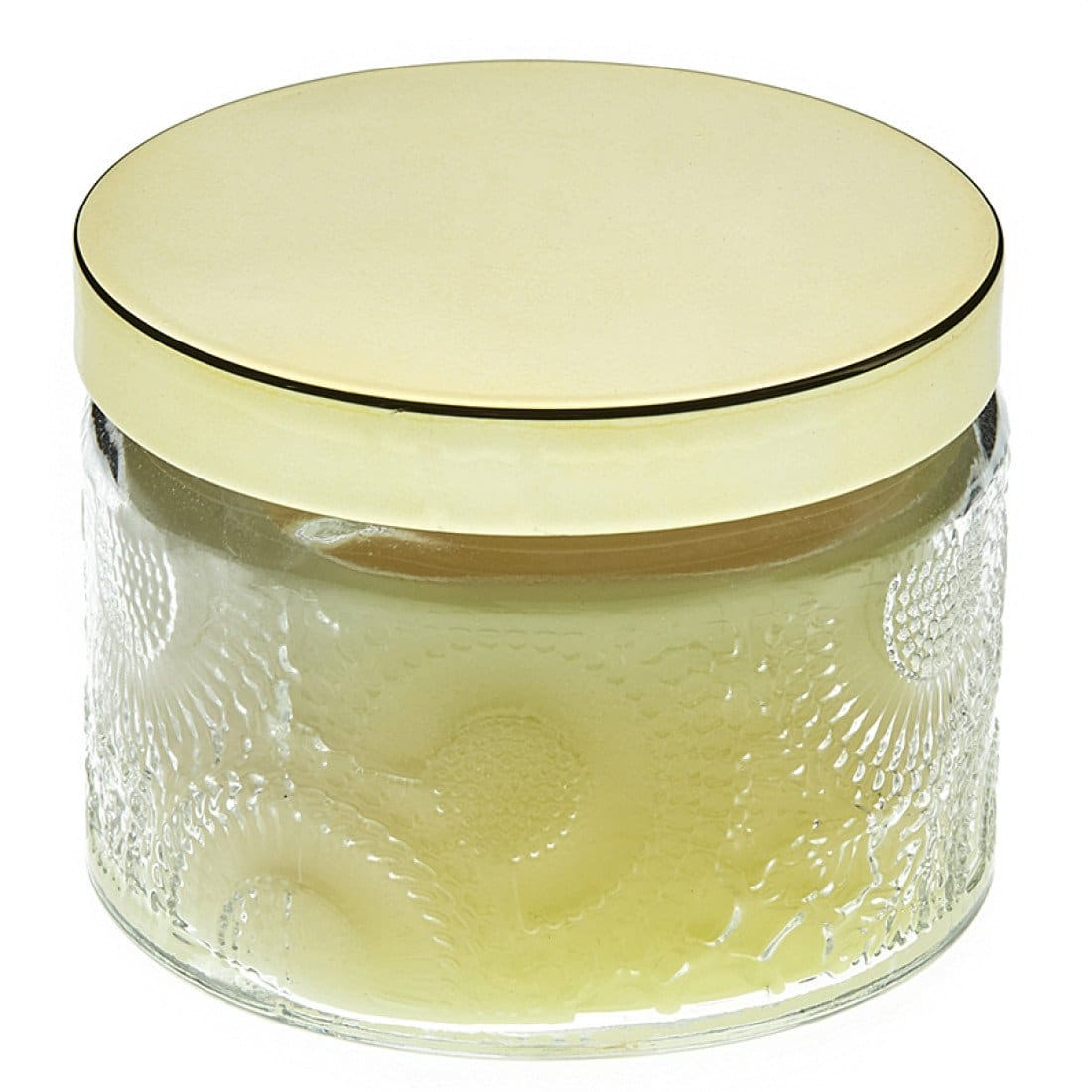Ανάγλυφη Υφή: Το βαζάκι διαθέτει περίτεχνα ανάγλυφα σχέδια στο γυαλί, που αντανακλούν το φως του κεριού δημιουργώντας μια μαγική ατμόσφαιρα.