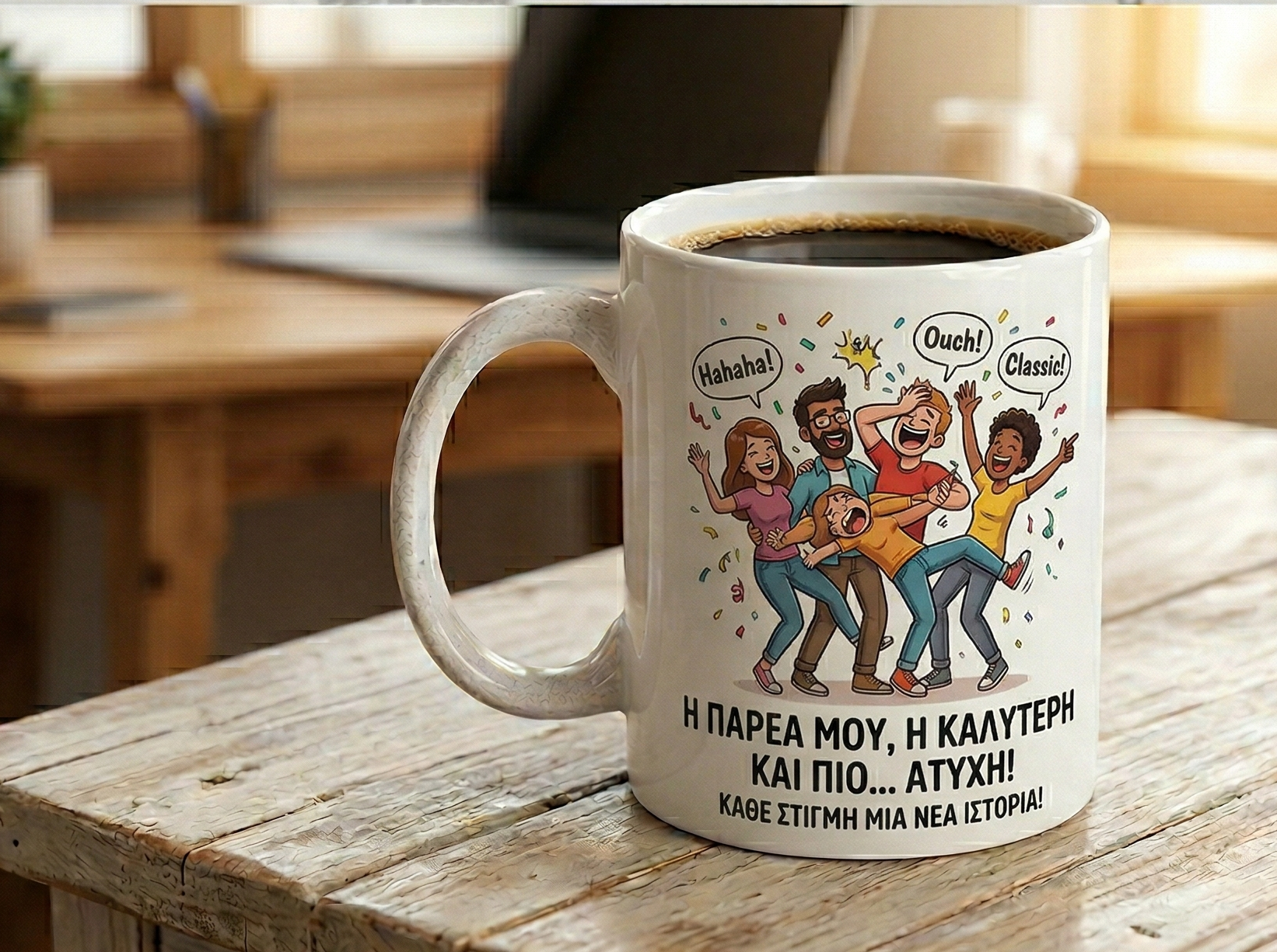 Το τελικό προϊόν: Το ψηφιακό σου καρτούν τυπώνεται πάνω σε κεραμική κούπα υψηλής ποιότητας, έτοιμο να κλέψει τις εντυπώσεις στο γραφείο ή στο σπίτι.