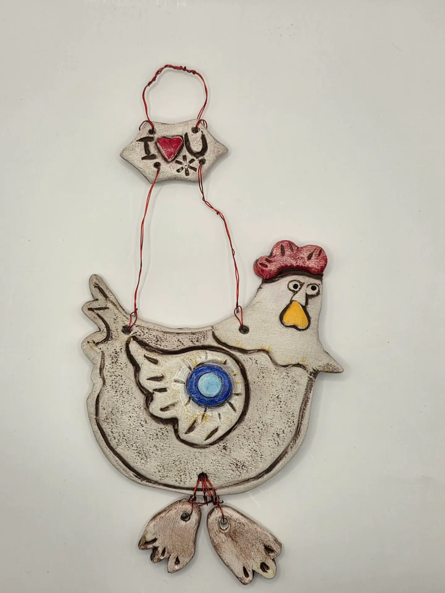 Χειροποίητη Κεραμική Κότα “Floral Nest” – Vintage Διακοσμητικό Τοίχου