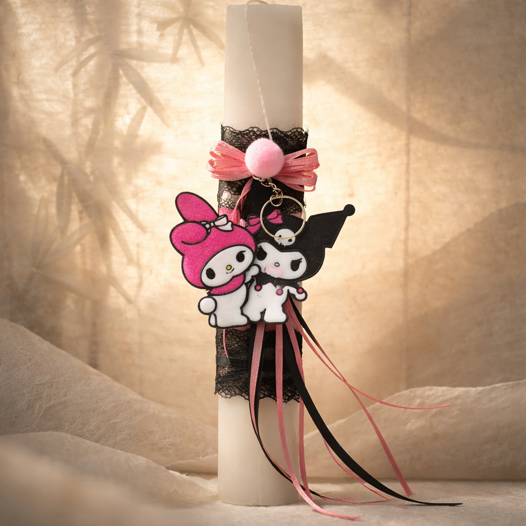 Χειροποίητη Πασχαλινή Λαμπάδα με μπρελοκ Kuromi
