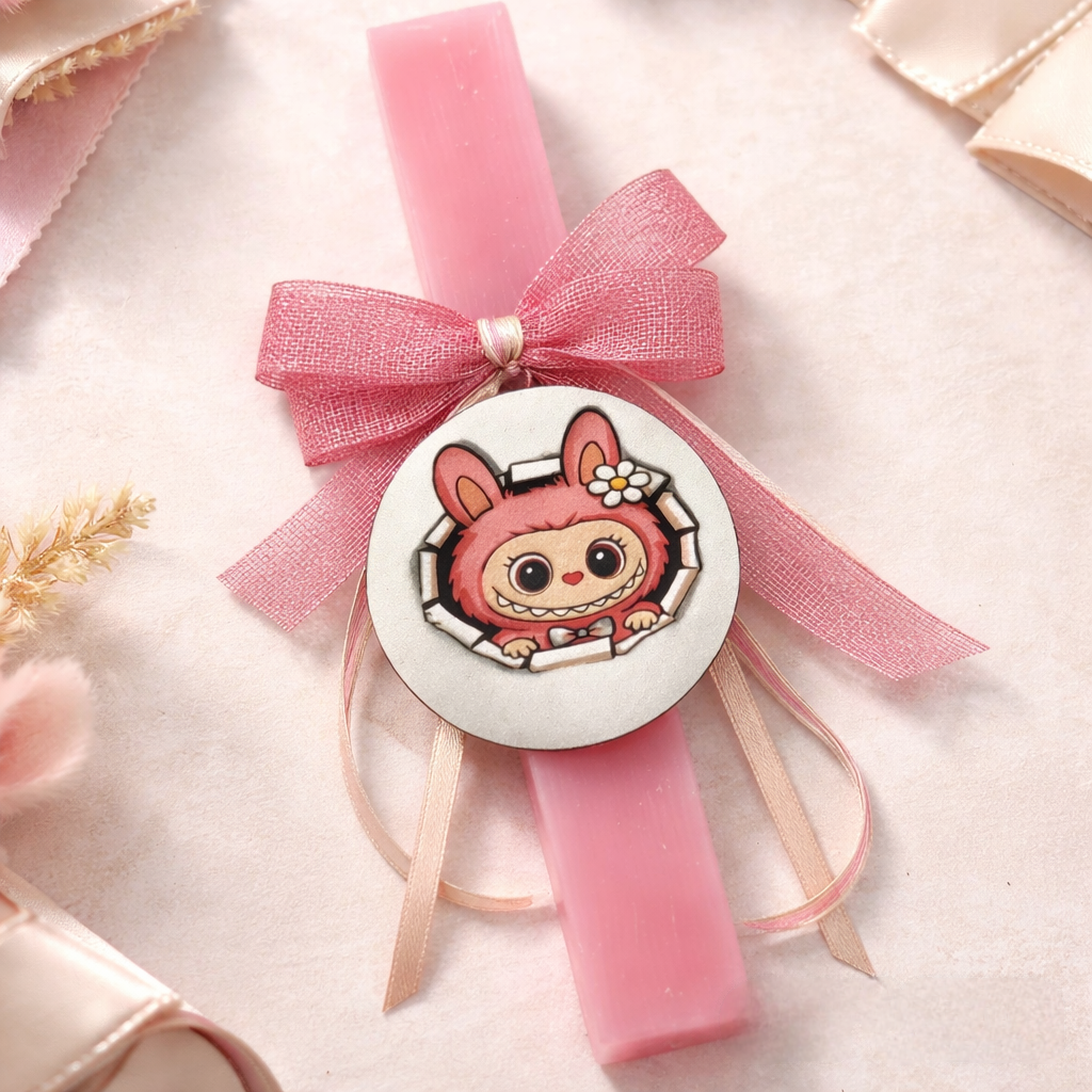 Χειροποίητη Πασχαλινή Λαμπάδα με σουβέρ Labubu