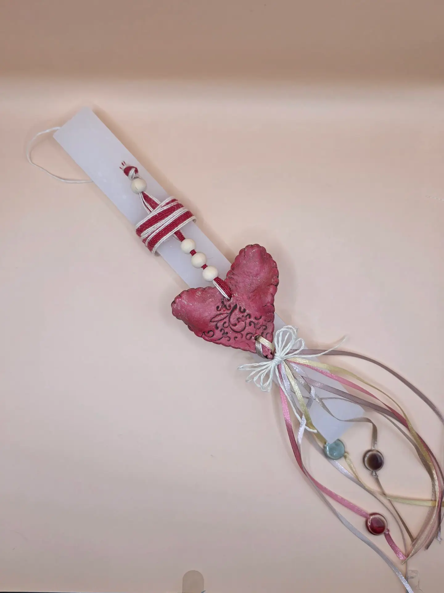 Χειροποίητη Πασχαλινή Λαμπάδα “Anatoli Heart” – Με Ανάγλυφη Κεραμική Καρδιά & Boho Τρέσες